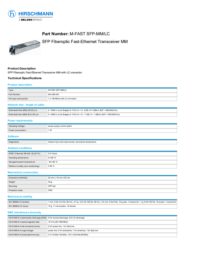Hirschmann M-FAST SFP-MM/LC Moduł SFP