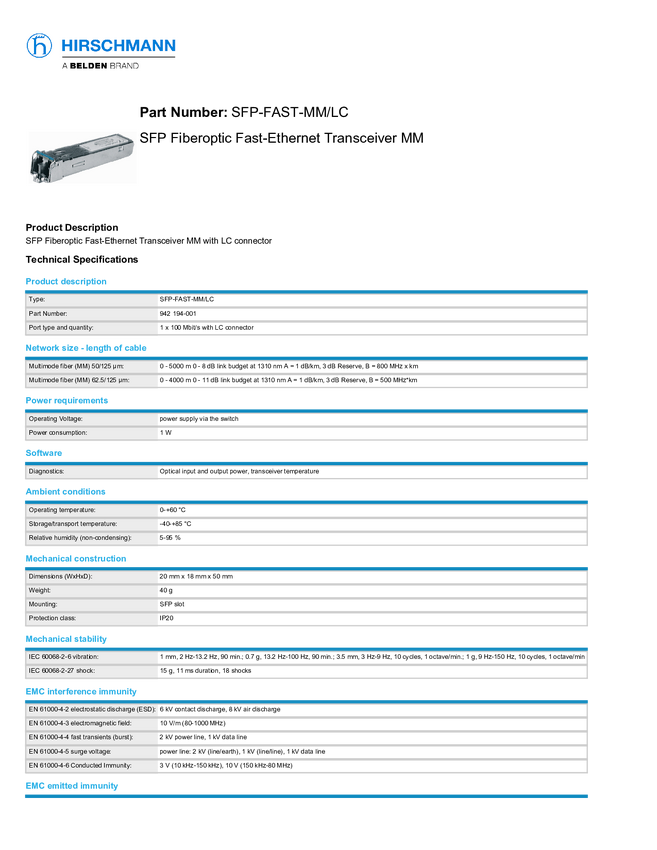 Hirschmann SFP-FAST-MM/LC-EEC Moduł SFP