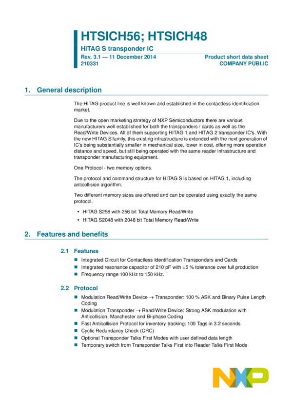 HITAG S Transponder IC 2-Pin SOT-500 Carrier T/R