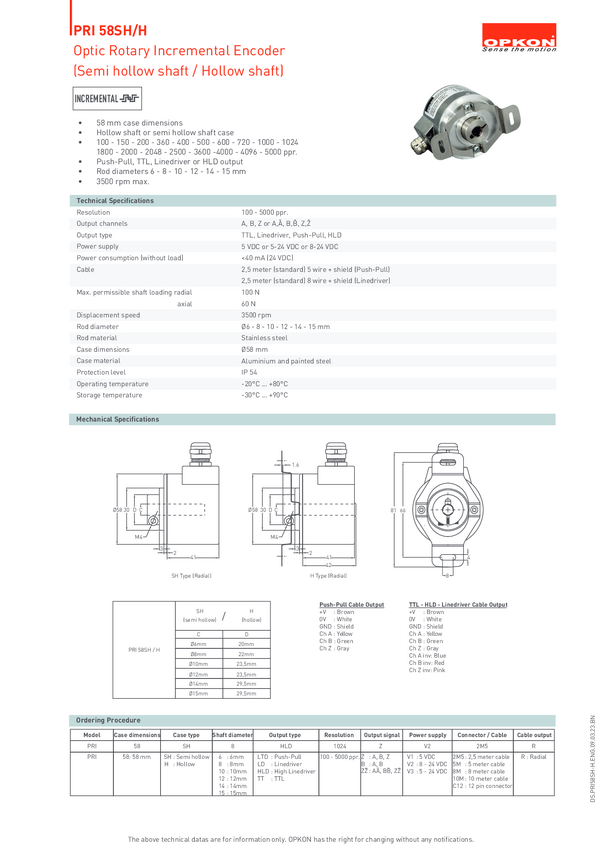Enkoder obrotowy inkrementalny Opkon PRI-58-H-10-HLD-100-ZZ-V3-2M5-R Optyczny zaciskany 58 mm