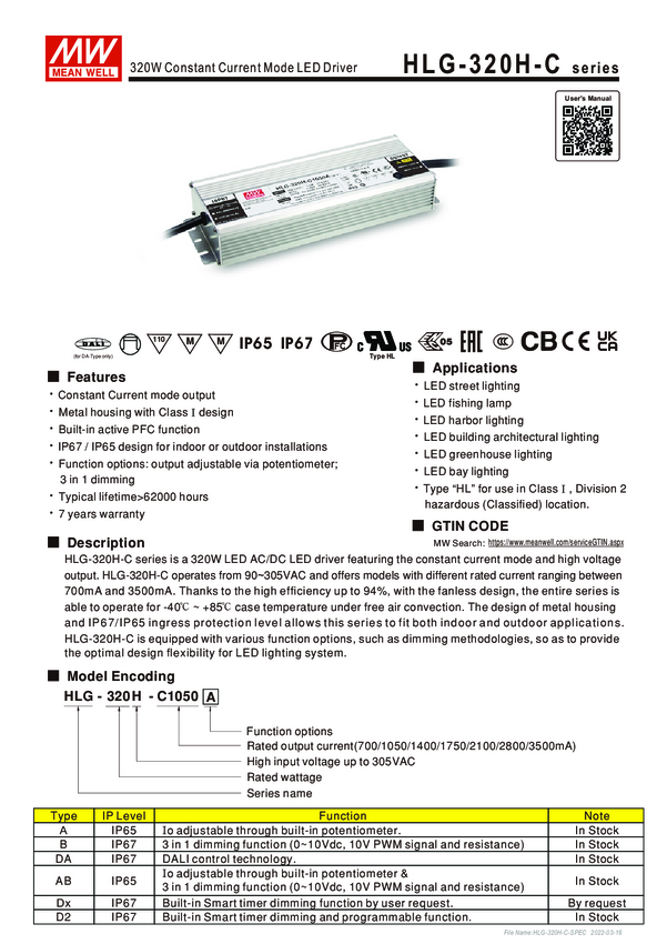 MeanWell HLG-120 IP65 Alu-SNT MW Mean Well HLG-120H-12, N/A