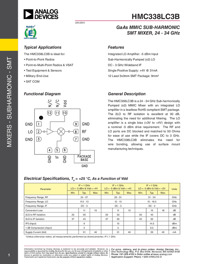 Sub Harmonic Mixer SMT, 24 - 34 GHz