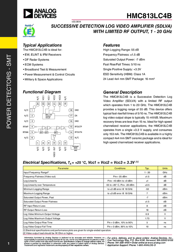 Successive Detection Log Video Amplifier (SDLVA) SMT, 1 - 20 GHz