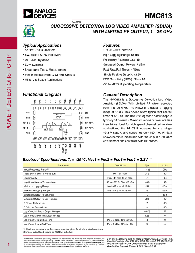 Successive Detection Log Video Amplifier (SDLVA) Chip, 1 - 26 GHz