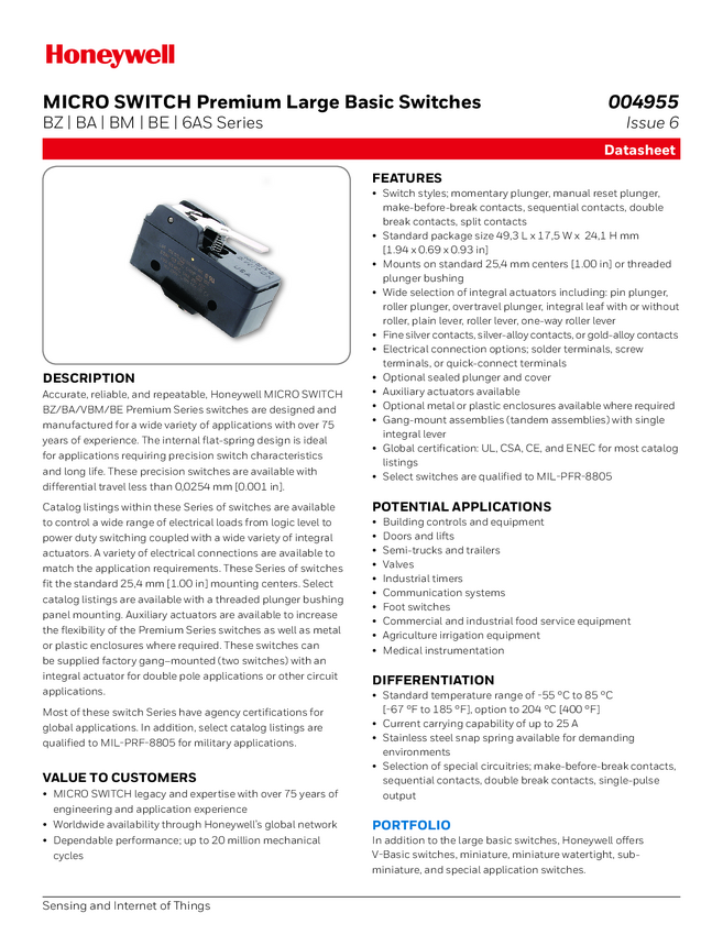 Honeywell SPS BZ-RW84-A2 Wyłącznik krańcowy 1 szt.