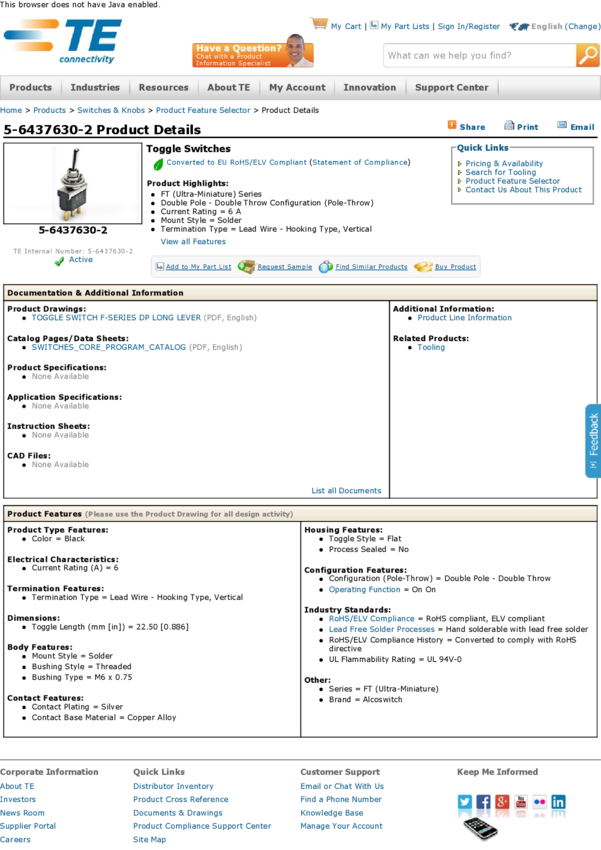 Switch Toggle ON ON 4PDT Round Toggle Hooking Wire Lead 6A 250VAC Panel Mount with Threads Bulk