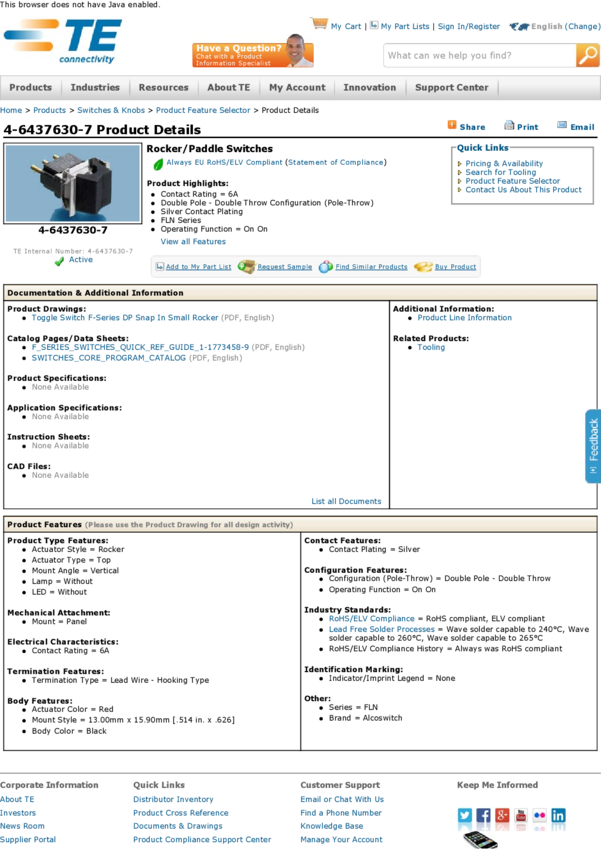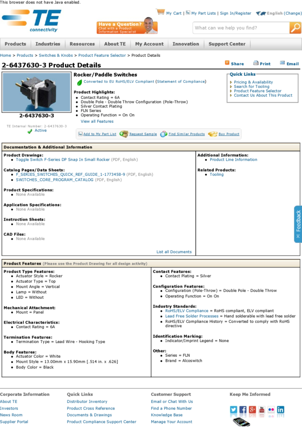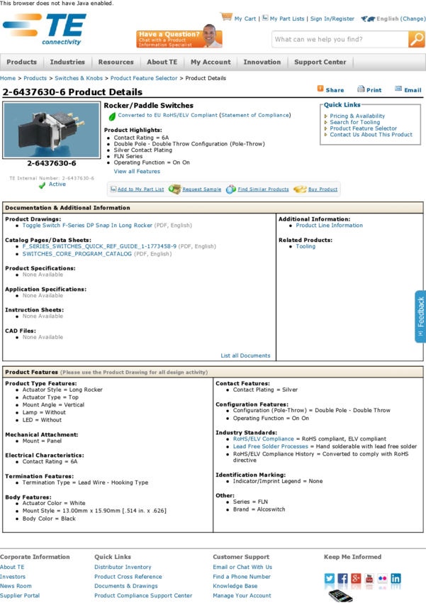 Switch Rocker ON ON DPDT Hooking Wire Lead Small Rocker 6A 250VAC 100000Cycle Bulk