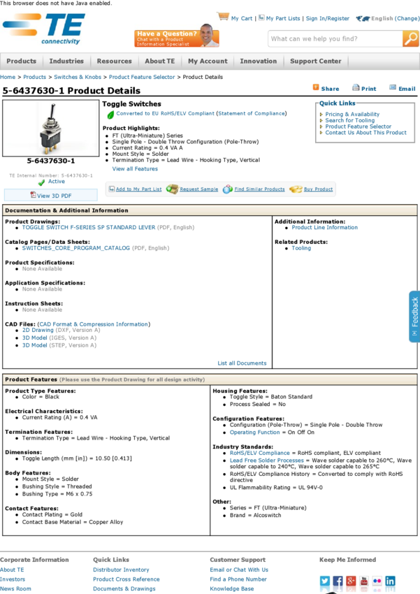 Switch Toggle ON ON SPDT Locking Lever Hooking Wire Lead 20VAC 20VDC 0.4VA Panel Mount with Threads Bulk