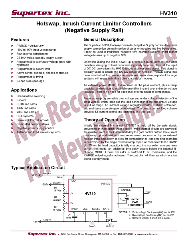 HV310 Datasheet - Hotswap Controller