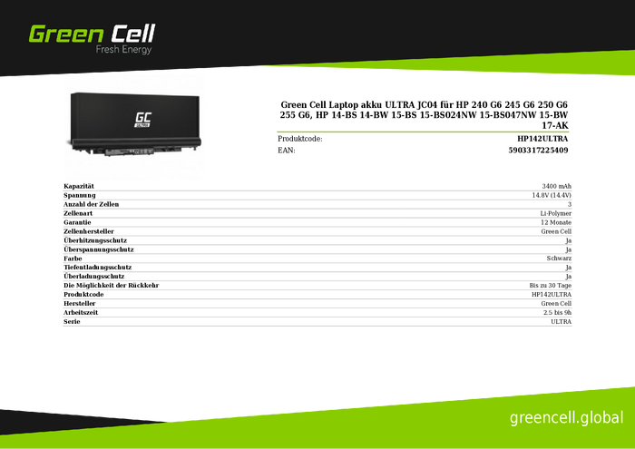 Akumulator do laptopa Green Cell GC-HP145, 11.55 V, 3400 mAh