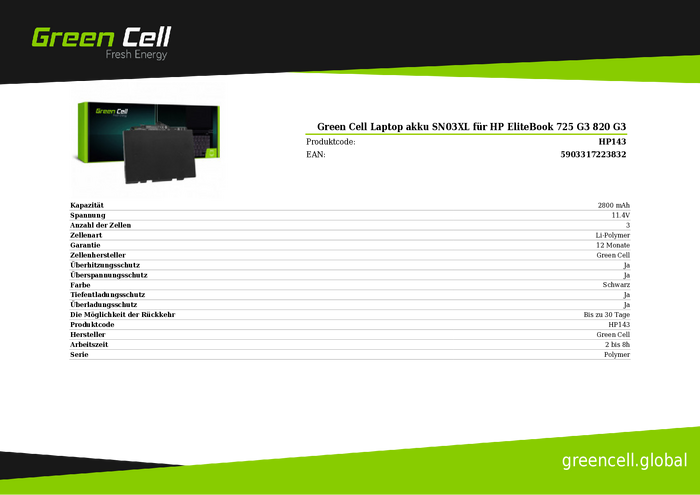 Green Cell Akumulator do laptopa SB03XL 11.25 V 4000 mAh HP