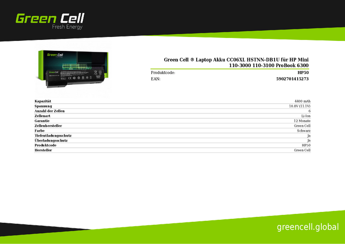 Akumulator do laptopa Green Cell HP50, 10.8 V, 4400 mAh