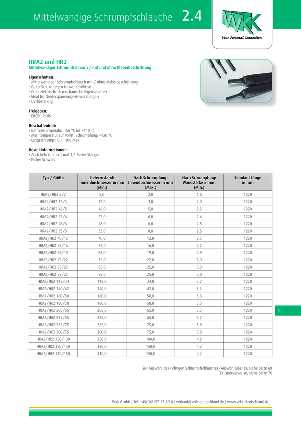 Hongshang ART002070 Rurka termokurczliwa bez kleju HR2, 3:1, od 55 mm do 16 mm, 1.22 m
