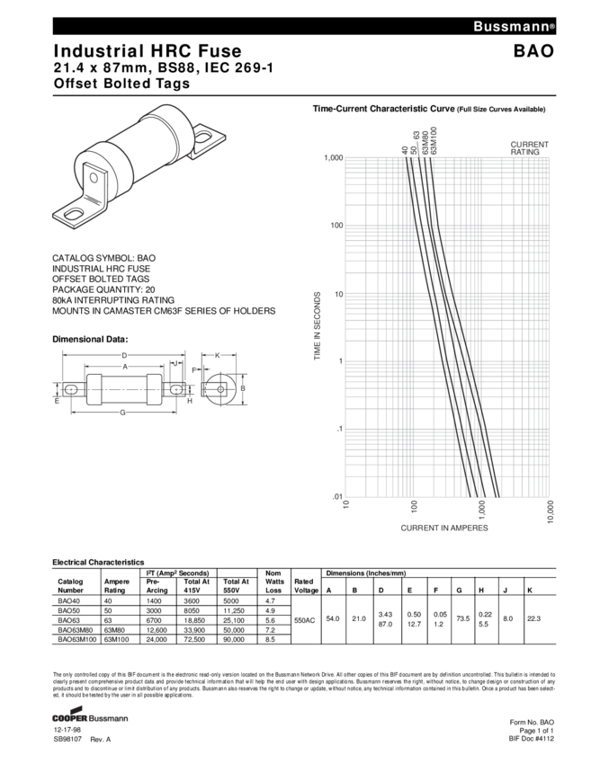 Fuse HRC 125A 415V 2-Pin Tap Bolt