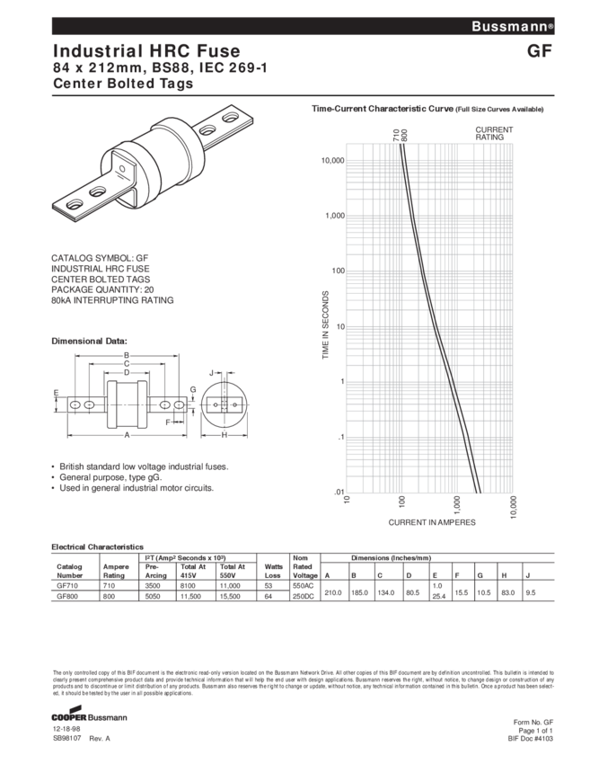 Fuse HRC 800A 550V 2-Pin Bolt Down Screw Mount