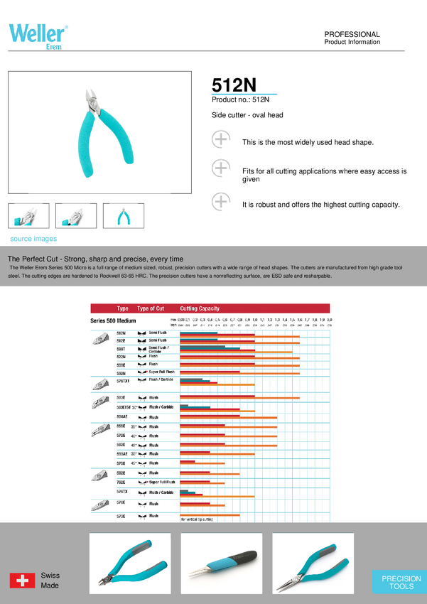 Szczypce boczne Weller Erem® 512N, 115 mm, 65 HRC, ESD