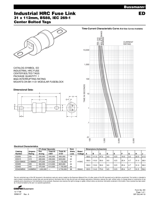 Fuse HRC 355A 415V 2-Pin Tap Bolt