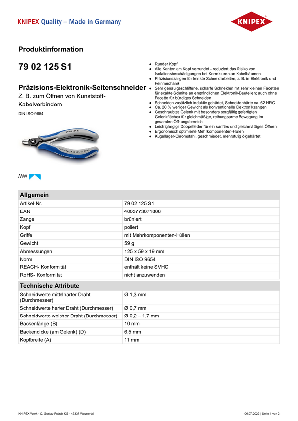 Szczypce boczne Knipex Knipex-Werk 79 02 125 S1, 130 mm, 64 HRC