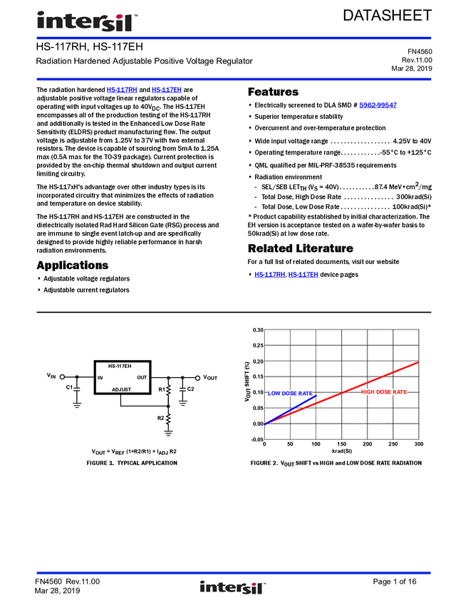 Radiation Hardened Adjustable Positive Voltage Regulator