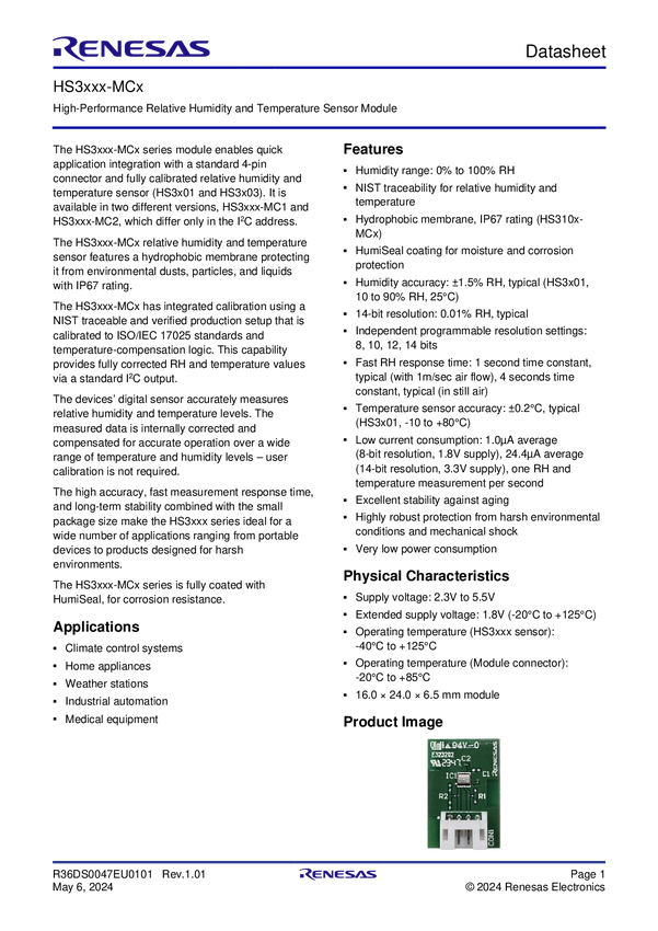 Relative Humidity and Temperature Sensor Module, ±1.5% RH Accuracy
