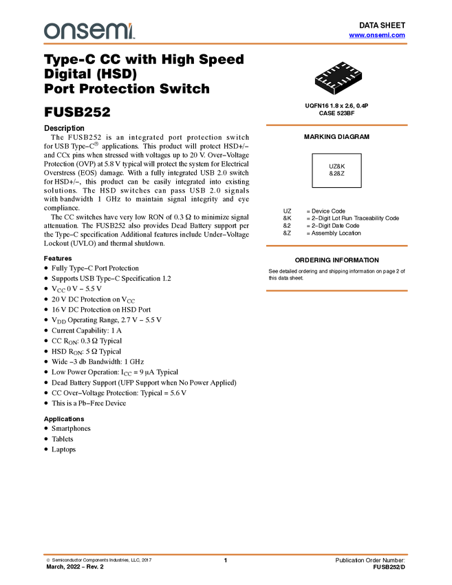 High Speed Digital (HSD) Port Protection Switch with Type-C CC