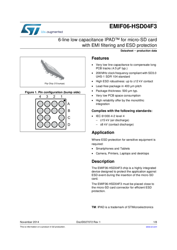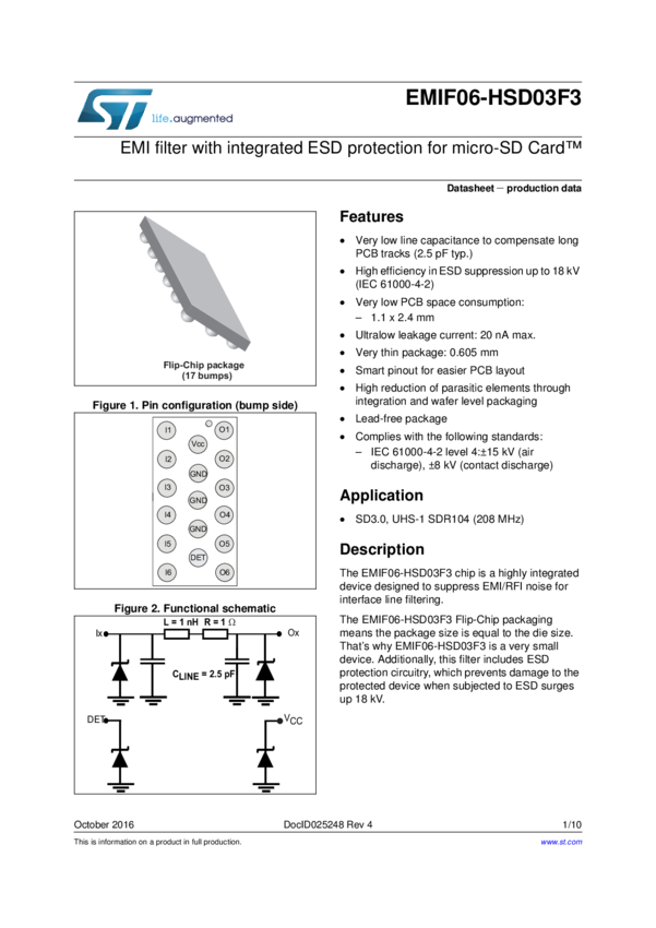 6-line EMI filter with integrated ESD protection for micro-SD Card™