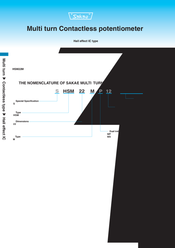 Opcje dla modelu HSM22 dopłata - Double output Cross X Potencjometr contactless 1 obrotowy na bazie IC z efektem Ha lla; IP65; 360 stopni standard; pobór mocy 6 mAl Efejtywny k ąt +-100 stopni ( 200 st lin+-3%) zakres temperatur pracy -40+105 stopni; FL W=4,5 D=8mm; ośka o średnicy 6 mm;dł 23mm Bushing M10 P 0,75; obudowa 22 mm gł. Special specifications Available Special effective angle 90 , 180, 270 w standardzie jest 360 st Special matching on the shaft, special output Cross, Parallel, Dual independent