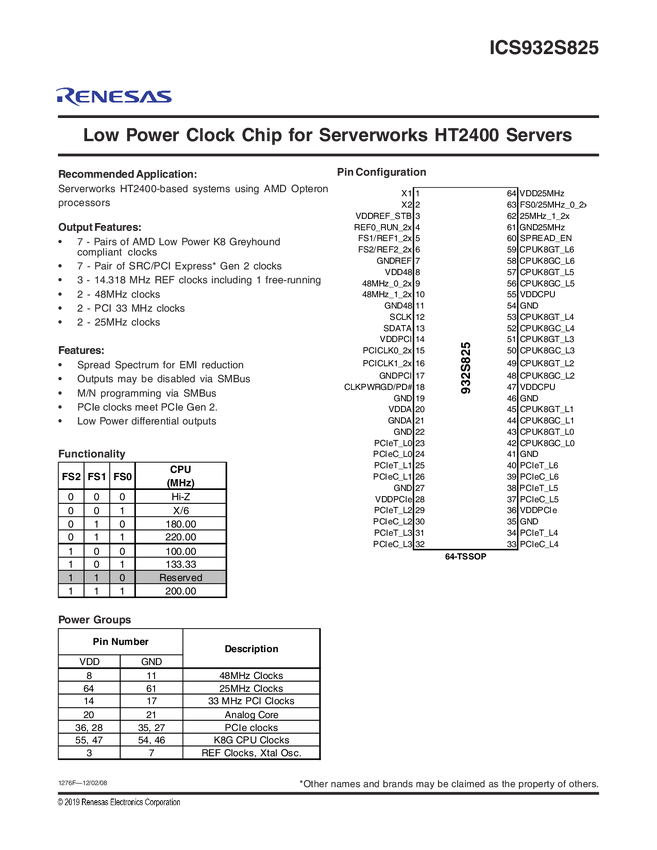 Low Power Clock Chip For Serverworks HT2400 Servers
