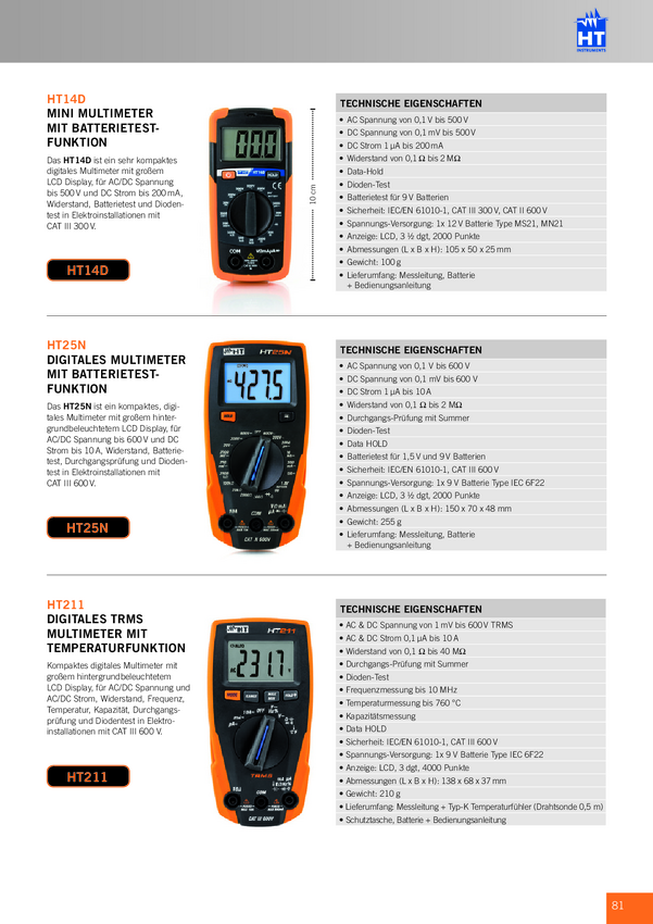Multimetr cyfrowy HT Instruments HT25N 1010170, CAT III 600 V, AC/DC, kalibracja DAkkS