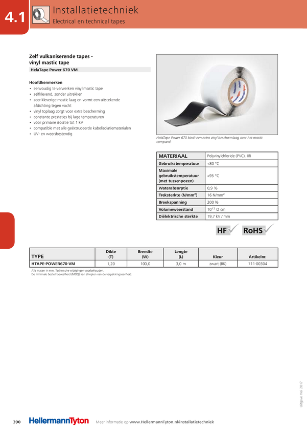 Taśma klejąca HellermannTyton 711-00304 HTAPE-POWER 670-VM-PVC/IIR-BK (3) (D x S) 3 m x 10 cm 3 m 1 szt.