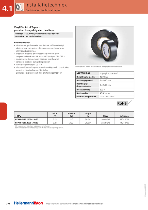 Taśma izolacyjna HellermannTyton 710-10701 HTAPE-FLEX2000+19x20-PVC-BK (D x S) 20 m x 19 mm 20 m 1 szt.