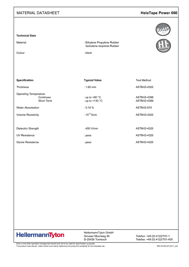 Taśma klejąca HellermannTyton 711-10000 HTAPE-SHIELD310-EPR-BK (D x S) 4.6 m x 19 mm 4.6 m 1 szt.