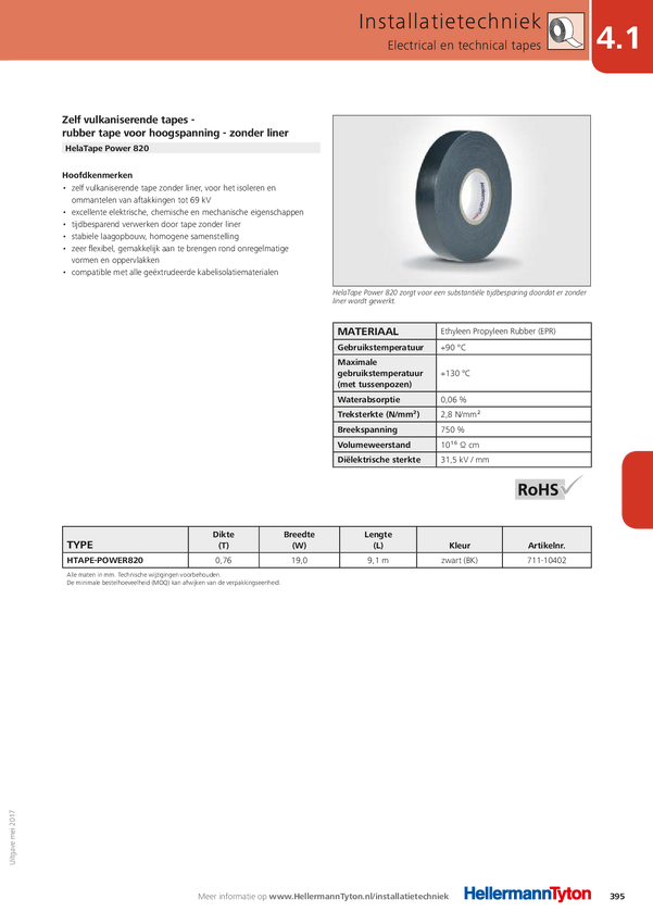 Taśma klejąca HellermannTyton 711-10402 HTAPE-POWER820-EPR-BK (9.1) (D x S) 9.1 m x 19 mm 9.1 m 1 szt.