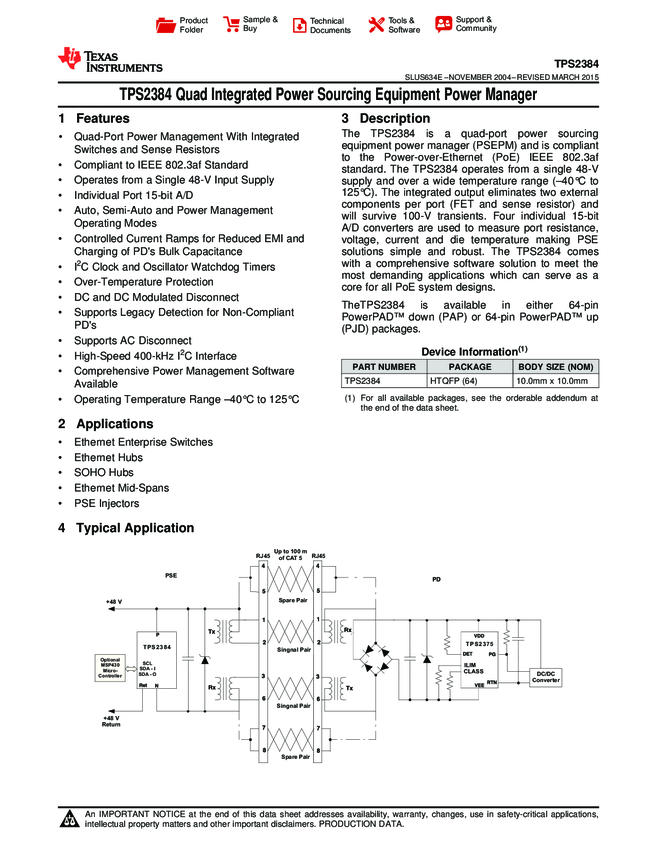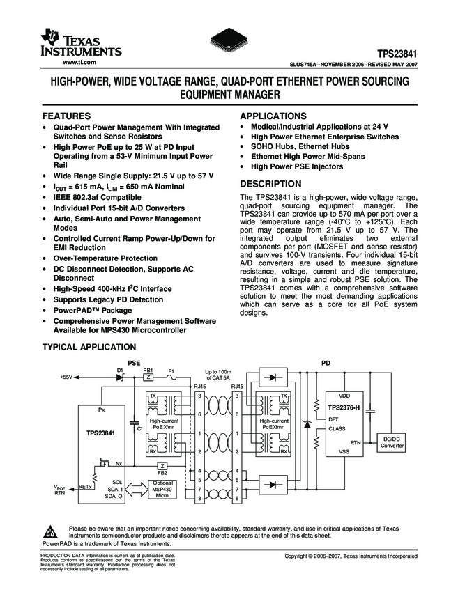 Power Sourcing Equipment 64-Pin HTQFP EP T/R