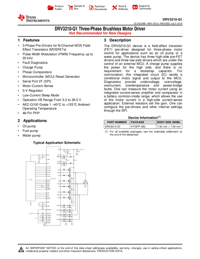 Brushless Motor Driver 5.3V to 28.5V 48-Pin HTQFP T/R