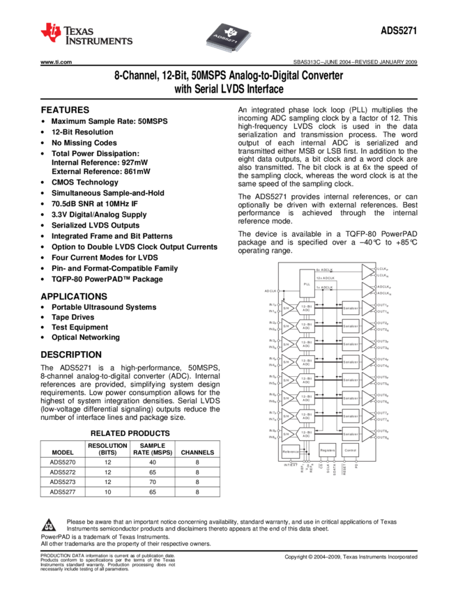ADC Octal Pipelined 50Msps 12-bit Serial 80-Pin HTQFP EP T/R