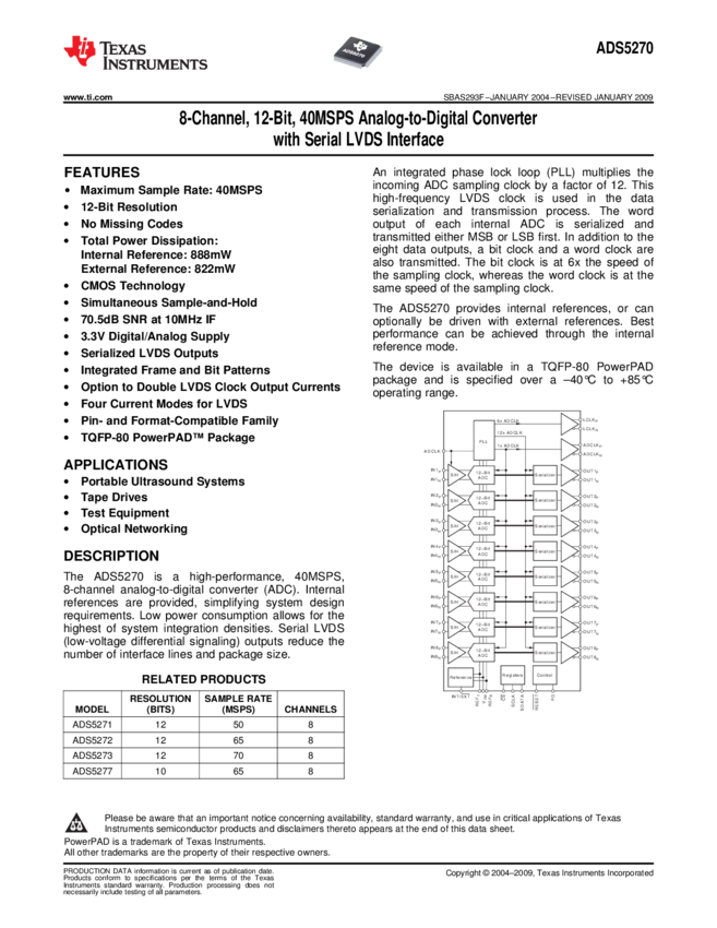 ADC Octal Pipelined 40Msps 12-bit Serial 80-Pin HTQFP EP T/R