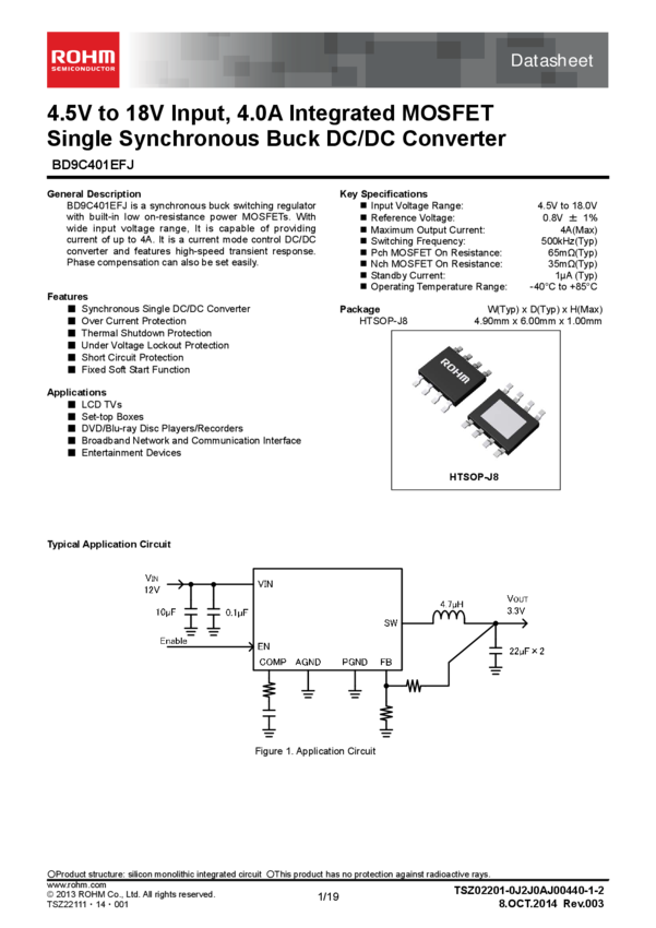 Conv DC-DC Single-OUT Step Down 4.2V to 18V 8-Pin HTSOP-J Embossed T/R