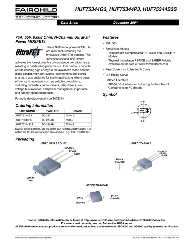 N-Channel UltraFET Power MOSFET 55V, 75A, 8mΩ
