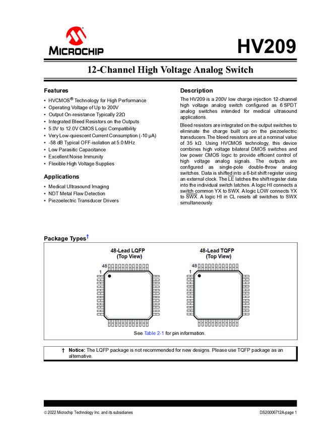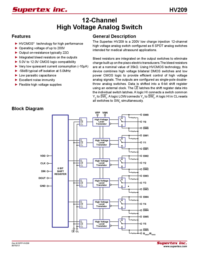 HV209 Datasheet - 12-Channel, HV Analog Switch (06/27/2014)