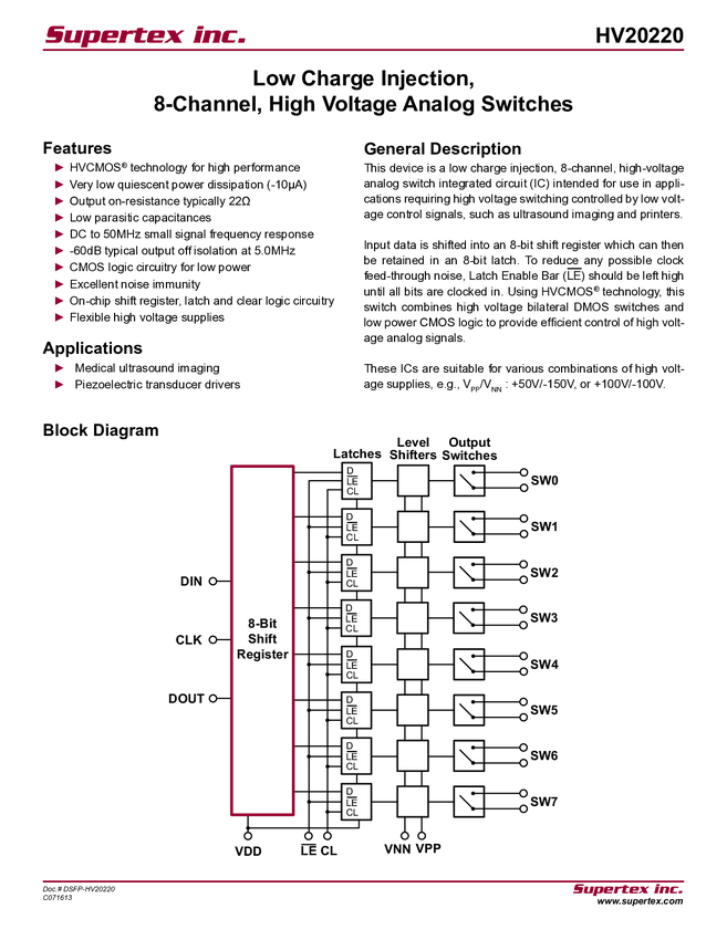 HV20220 Datasheet - Low Charge Injection, 8-Channel, HV Analog Switch