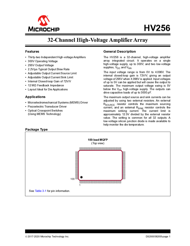 HV256 32-Channel High-Voltage Amplifier Array Data Sheet