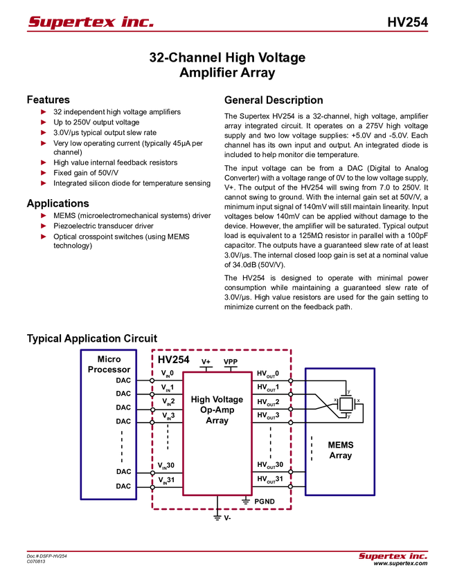 HV254 Datasheet - 32-Channel HV Amplifier Array