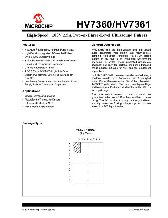 HV7360/7361 High-Speed ±100V 2.5A Two-or-Three-Level Ultrasound Pulsers