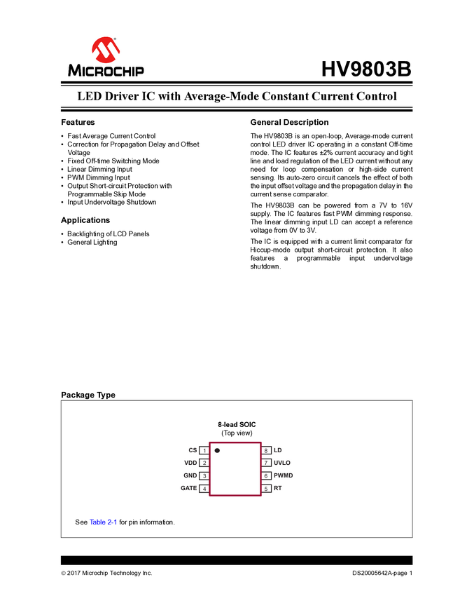 HV9803B Datasheet - LED Driver with Average-Mode Constant Current Control (08/27/2014)
