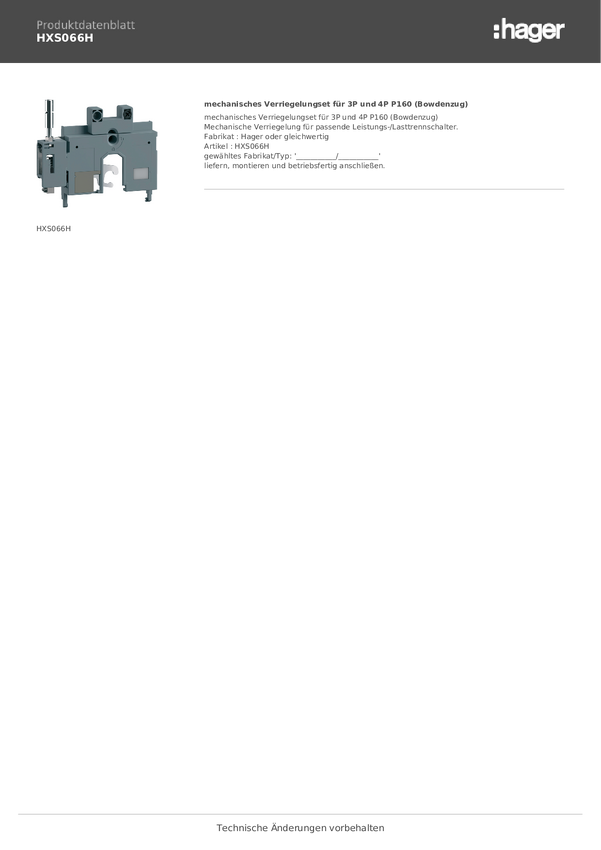 Hager HXS066H Pokrywa 1 szt.