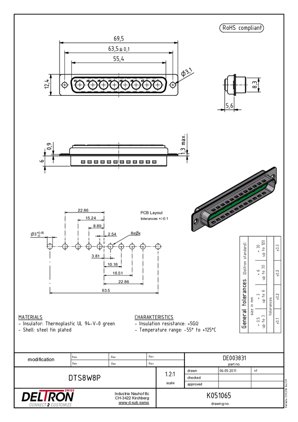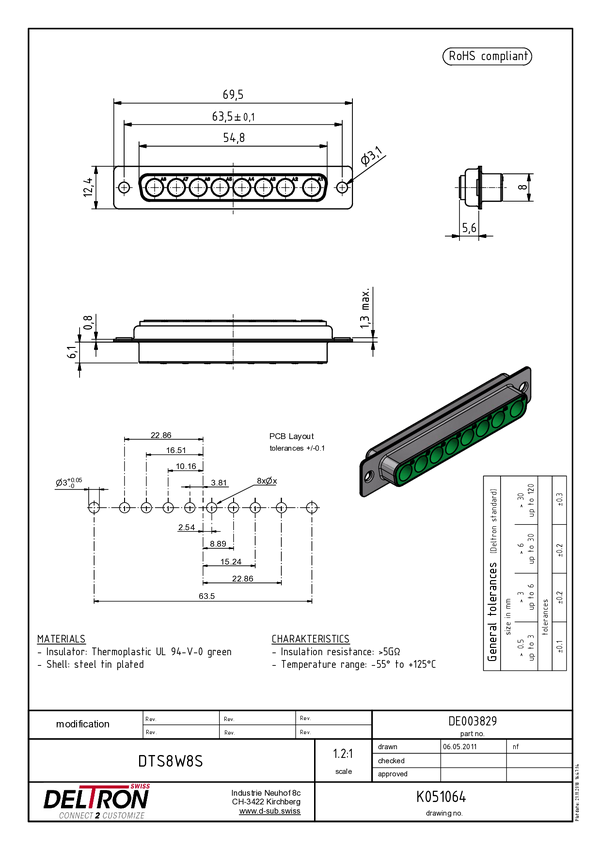 Deltron Connectors Deltron DTS 8W8 S Złącze D-Sub, hybrydowe 180 ° Ilość styków: 8 1 szt.
