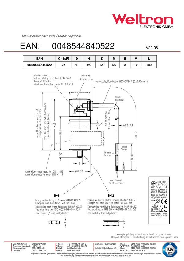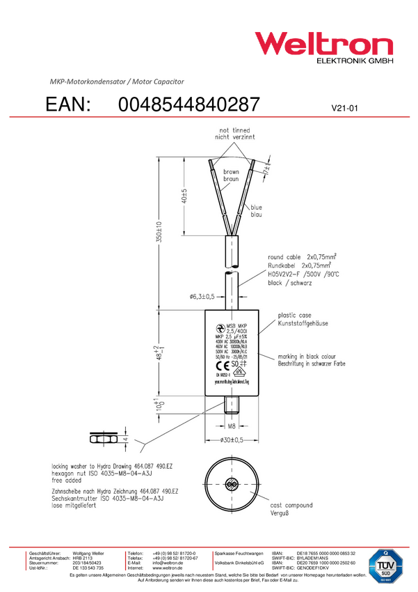 Hydra 024401376402 5 % 500 V/AC Kondensator silnikowy MKP 1 szt.