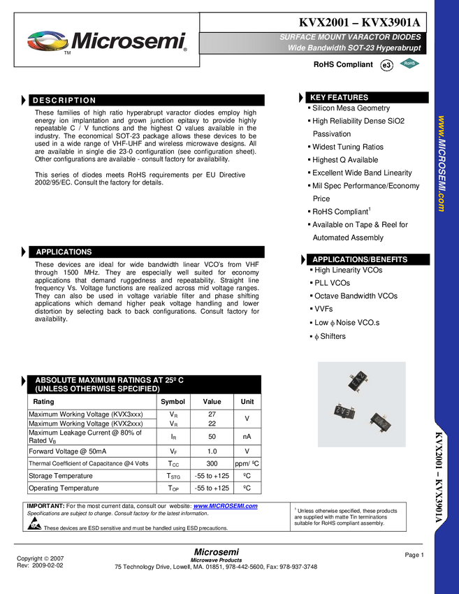 GaAs Hyperabrupt Varactor MV3001 - MV34010