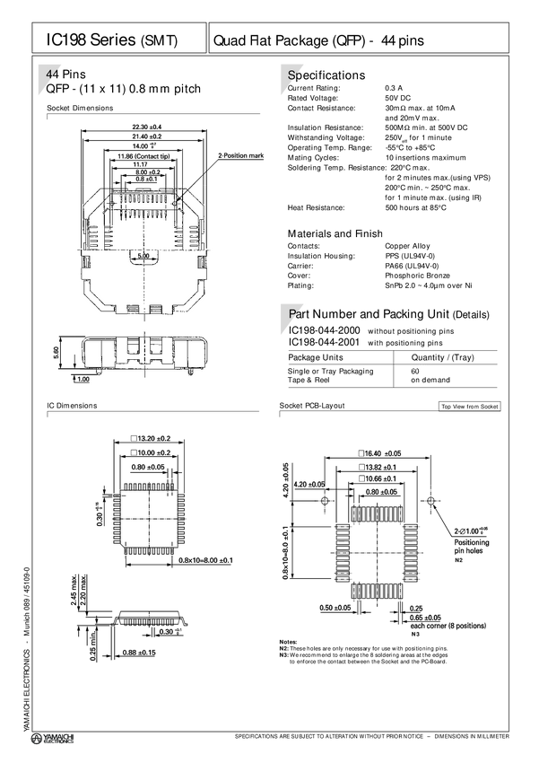 Podstawka testowa TQFP44 (SMD) eZIF Yamaichi R=0,8mm